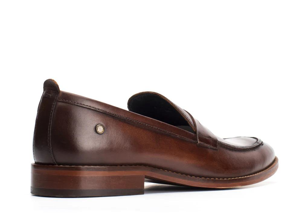 Lens is a men's penny loafer from Base London. Its sleek low profile makes this shoe perfect for showing a little ankle at summer events. Forged from the finest leathers, Lens steals the limelight with its simple design and ornate branding stud. Don't be camera shy, Lens will keep you strutting the red carpet for hours with its cushioned Ortholite inner sole.